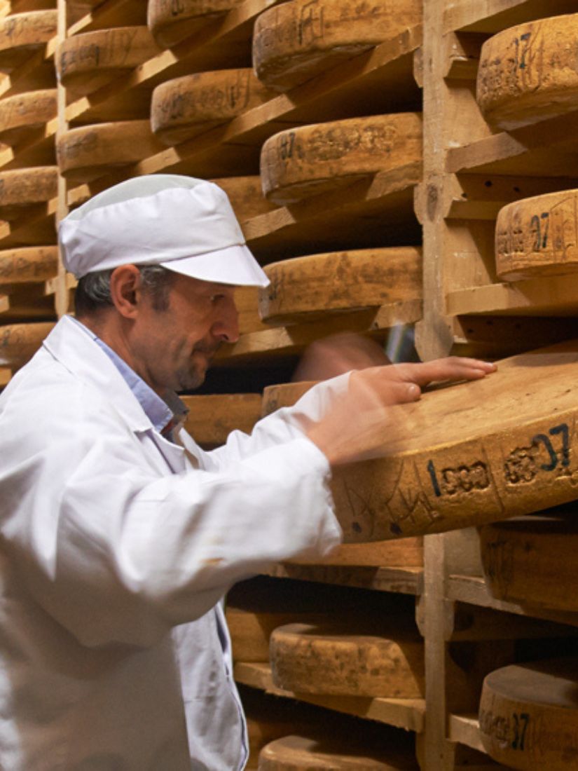 Der COMTÉ-Affineur steht in enger Verbindung mit der Genossenschaft und mit dem Käser; er kennt die Anfänge des jungen Käses, seine Entwicklungsbedingungen, und das ist für eine gute Reifung von entscheidender Bedeutung. Denn jeder Laib ist anders. Temperatur, Luftfeuchtigkeit, Pflege, Wenden, Abreiben mit Salz – all das beeinflusst, wie sich Textur und Aromen entfalten. Der Affineur entscheidet, wann ein Käse sein volles Potenzial erreicht hat. Wann er bereit ist.