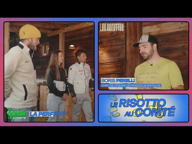 COMTÉ-Risotto: Dieses feine Reisgericht wird von den Biathleten Jeanne Richard, Antonin Guigonnat und Oscar Lombardot mit viel Freude und Witz in der Freiluftküche zubereitet. (Unbedingt anschauen! Sie verraten einen Tipp, mit dem verhindert wird, dass der Reis am Topfboden klebt.)